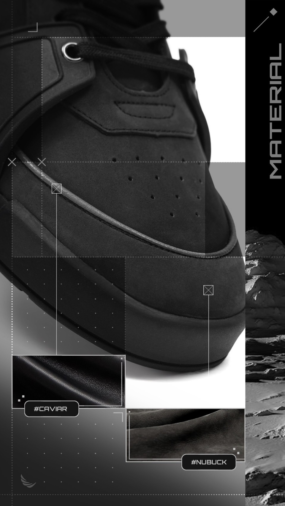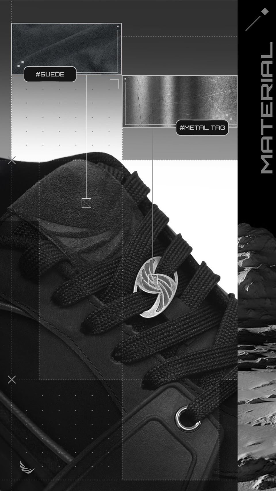 ■ 鞋舌LOGO壓花、鞋墊LOGO印刷、鞋後跟刺繡文字、金屬做舊鐵牌